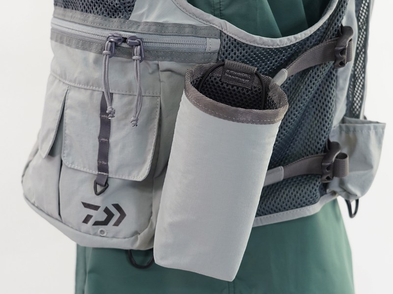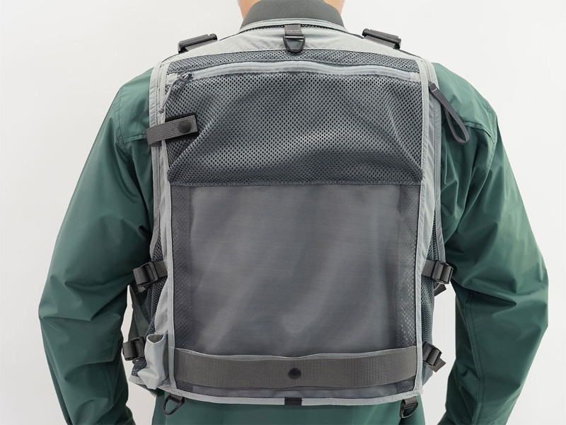 そのほか、胸と腰の内ファスナーポケットや糸くず取りベルクロ、前後の裾Dカン、前後のロッドホルダーなど装備が充実。