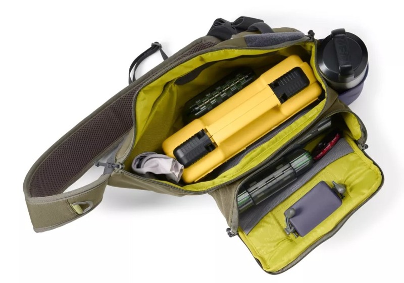 左右のどちらの肩にもかけられるスリングタイプの渓流バッグです。