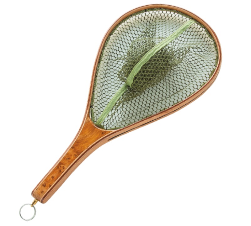 渓流トラウトフィッシングの雰囲気にぴったりなウッドフレームのランディングネット。